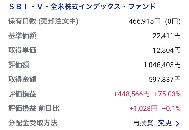 ・SBI・V・全米株式インデックス・ファンド:1,046,403円(+448,566円)