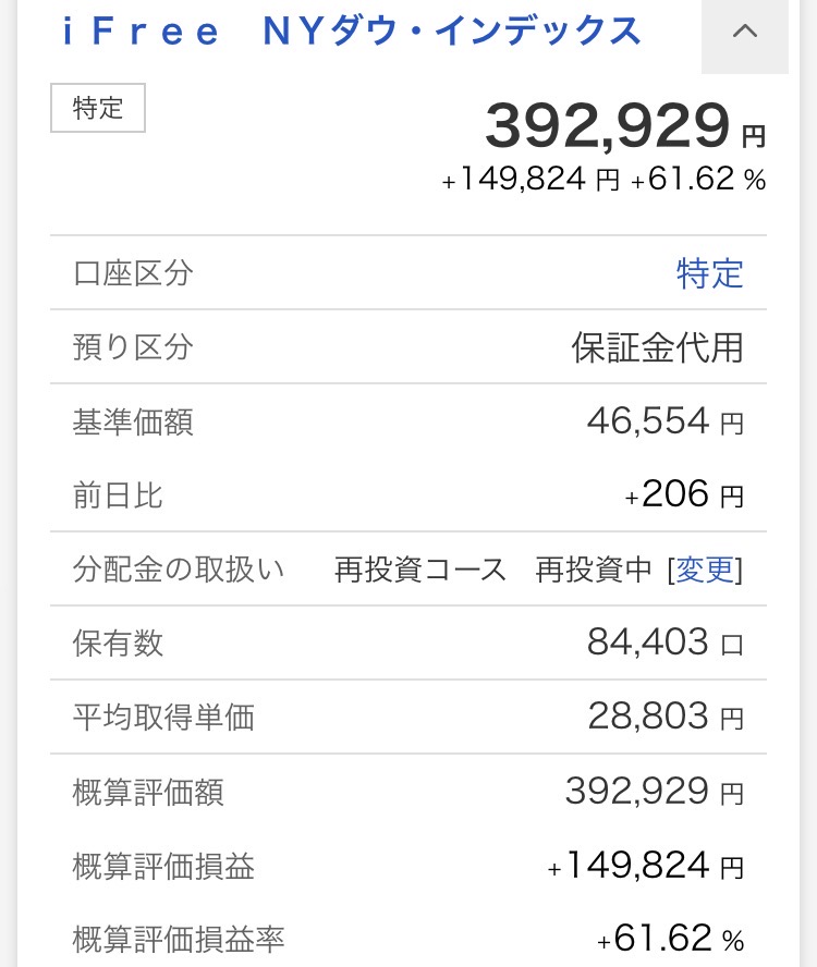 ・iFree NYダウ・インデックス:392,929円(+149,824円)