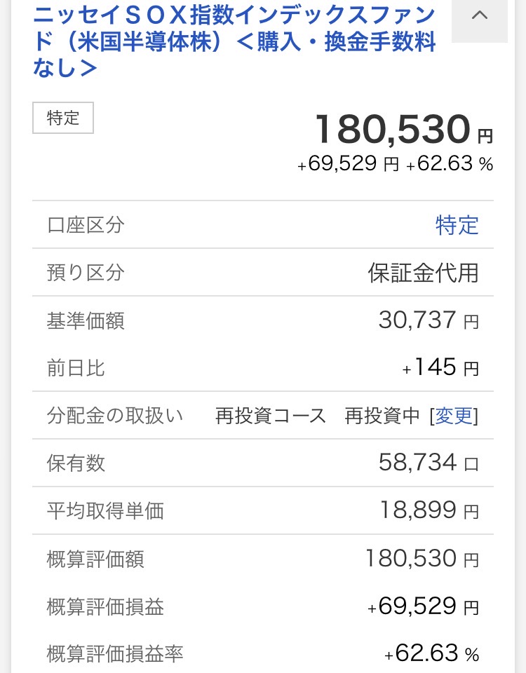 ・ニッセイSOX指数インデックスファンド(米国半導体株):180,530円(+69,529円)