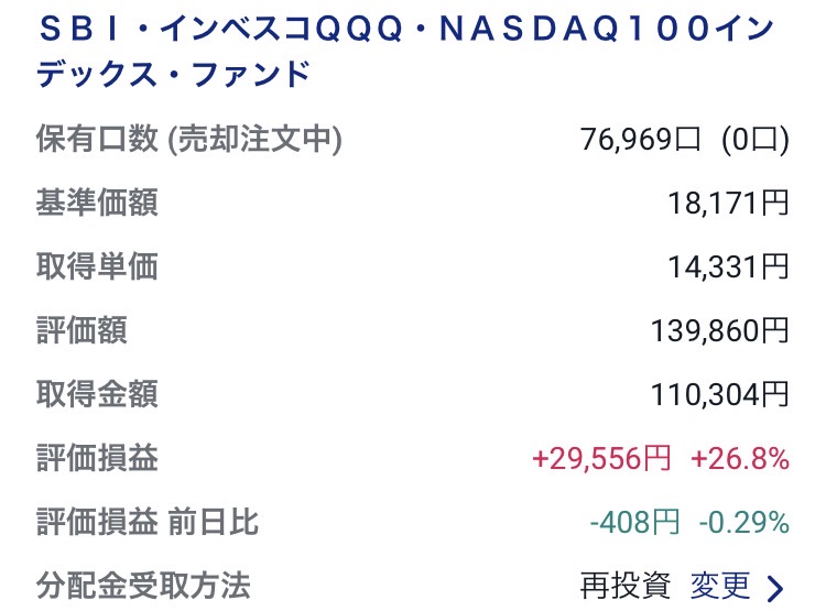 ・SBI・インベスコQQQ・NASDAQ100インデックス・ファンド:139,860円(+29,556円)