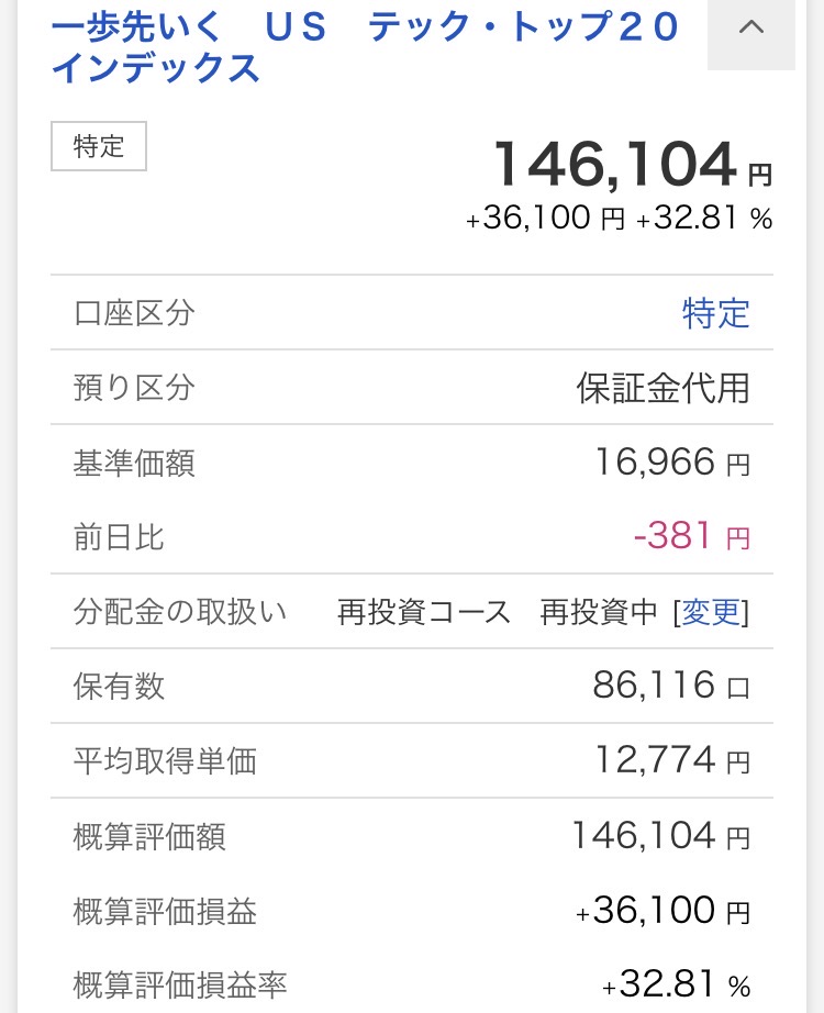 ・一歩先いく US テック・トップ20インデックス:146,104円(+36,100円)