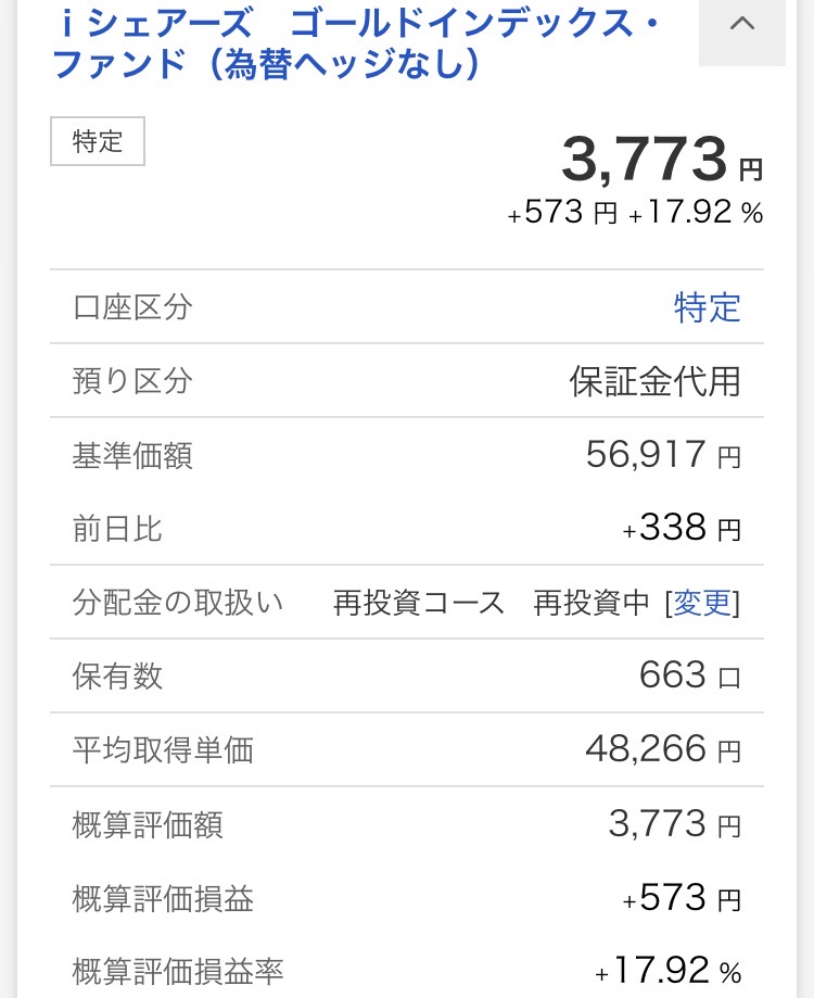 ・iシェアーズ ゴールドインデックス・ファンド(為替ヘッジなし):3,773円(+573円)
