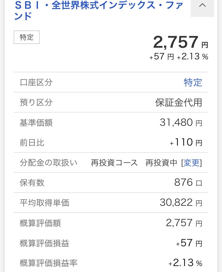 ・SBI・全世界株式インデックス・ファンド:2,757円(+57円)
