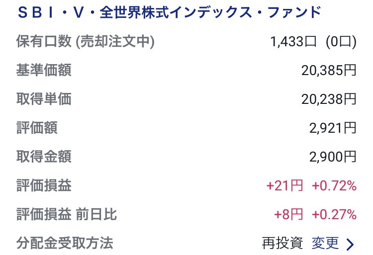 ・SBI・V・全世界株式インデックス・ファンド:2,921円(+21円)