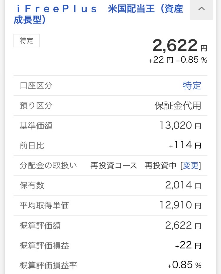 ・iFreePlus 米国配当王(資産成長型):2,622円(+22円)