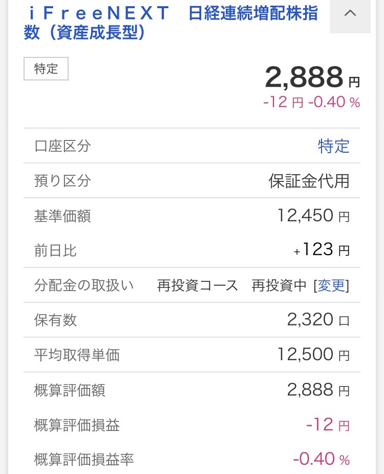 ・iFreeNEXT 日経連続増配株指数(資産成長型):2,888円(▲12円)