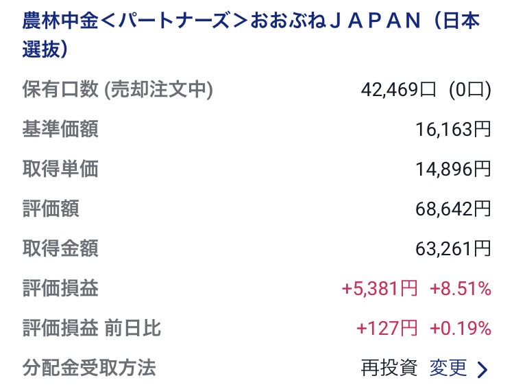 ・NVIC-農林中金<パートナーズ>おおぶねJAPAN(日本選抜):42,469口(±0口)、2024年1月~2025年12月