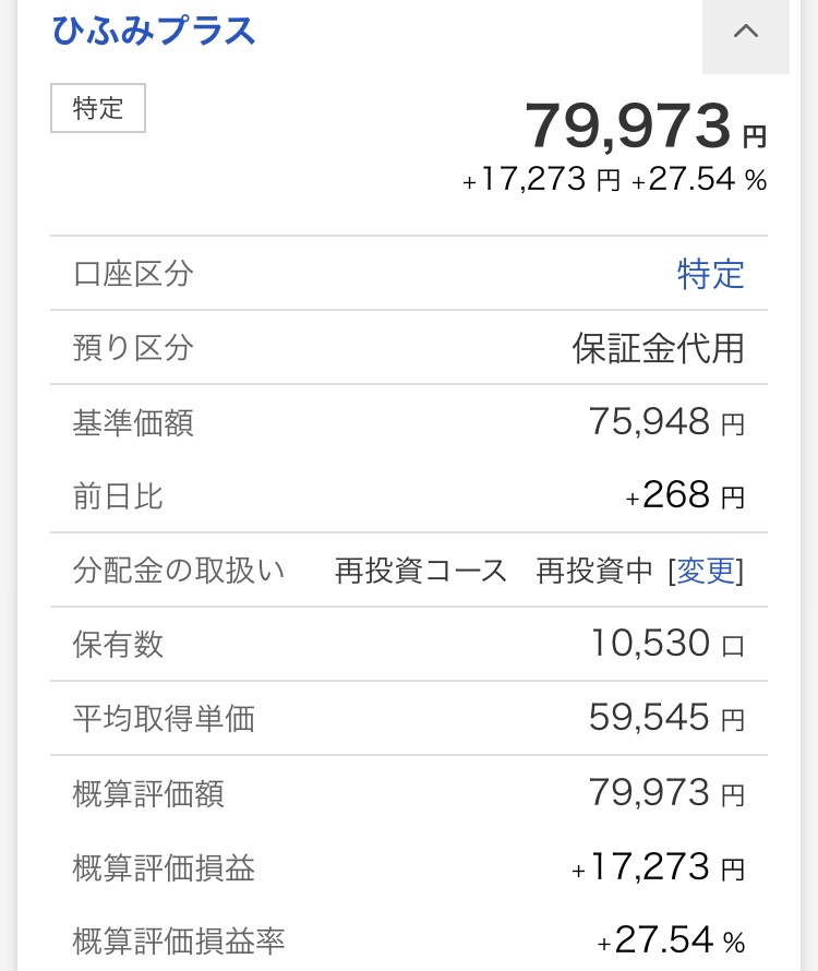 ・ひふみプラス:79,973円(+17,273円)