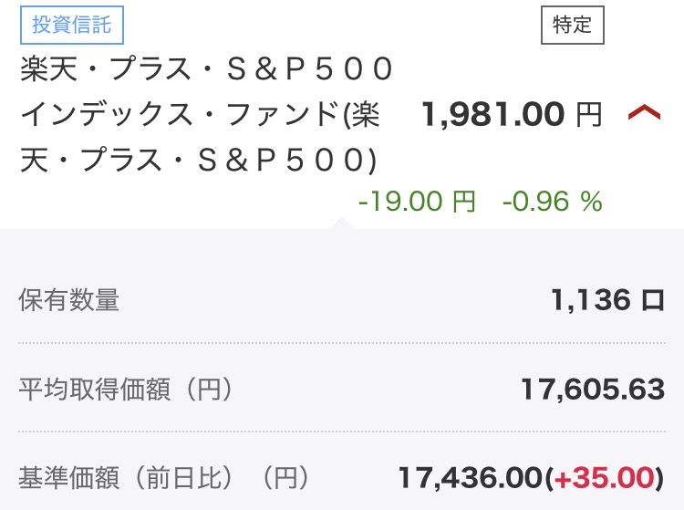 ・楽天・プラス・S&P500インデックス・ファンド:1,981円(▲19円)